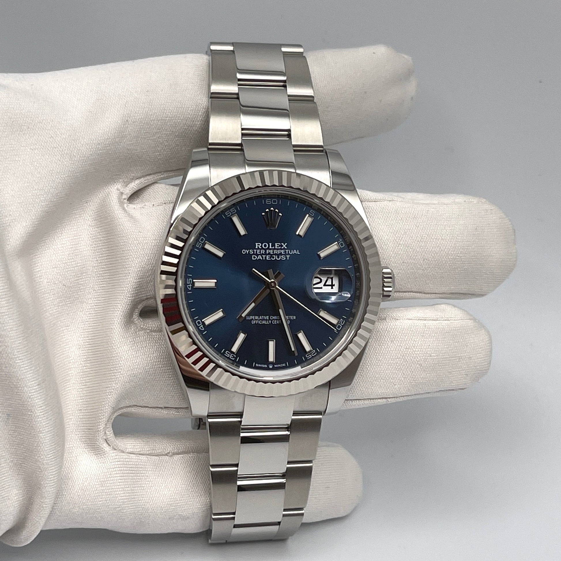 The 2025 Watch Datejust is designed with a 41mm stainless steel case.?complemented by the signature fluted bezel. and styled on an oyster bracelet. The bright blue dial features?stick hour markers and hands and hosts a date feature at 3 o'clock. The 2025 Watch Datejust is a classic model and the next addition to your collection.