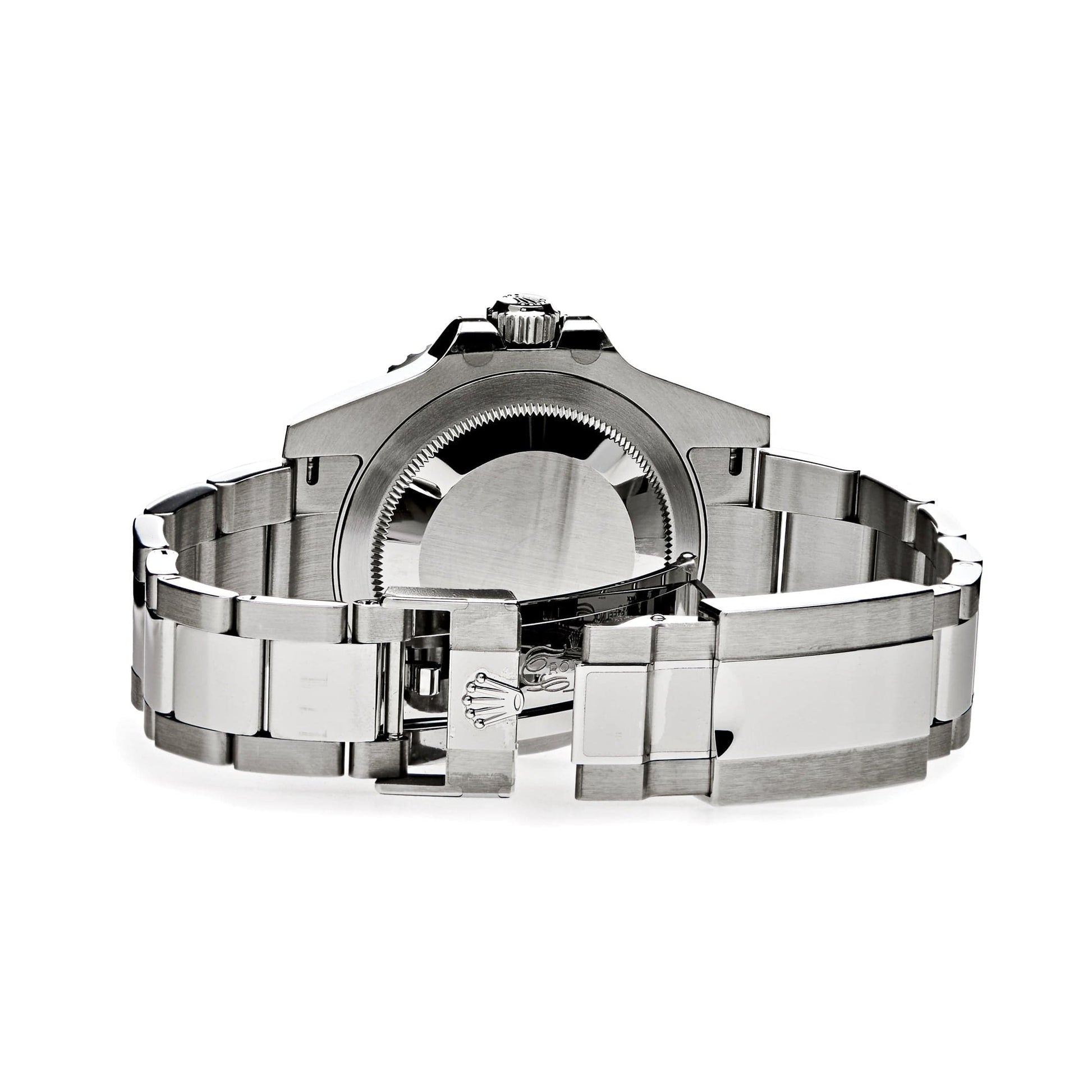The 2025 Watch GMT-Master II 'Batman' features a 40mm stainless steel case with a black and blue 24hr Cerachrom on the bidirectional bezel. Its black dial and white luminous hour markers elevates this design. attracting a world of travelers. The 2025 Watch comes on an oyster bracelet with a fold clasp.