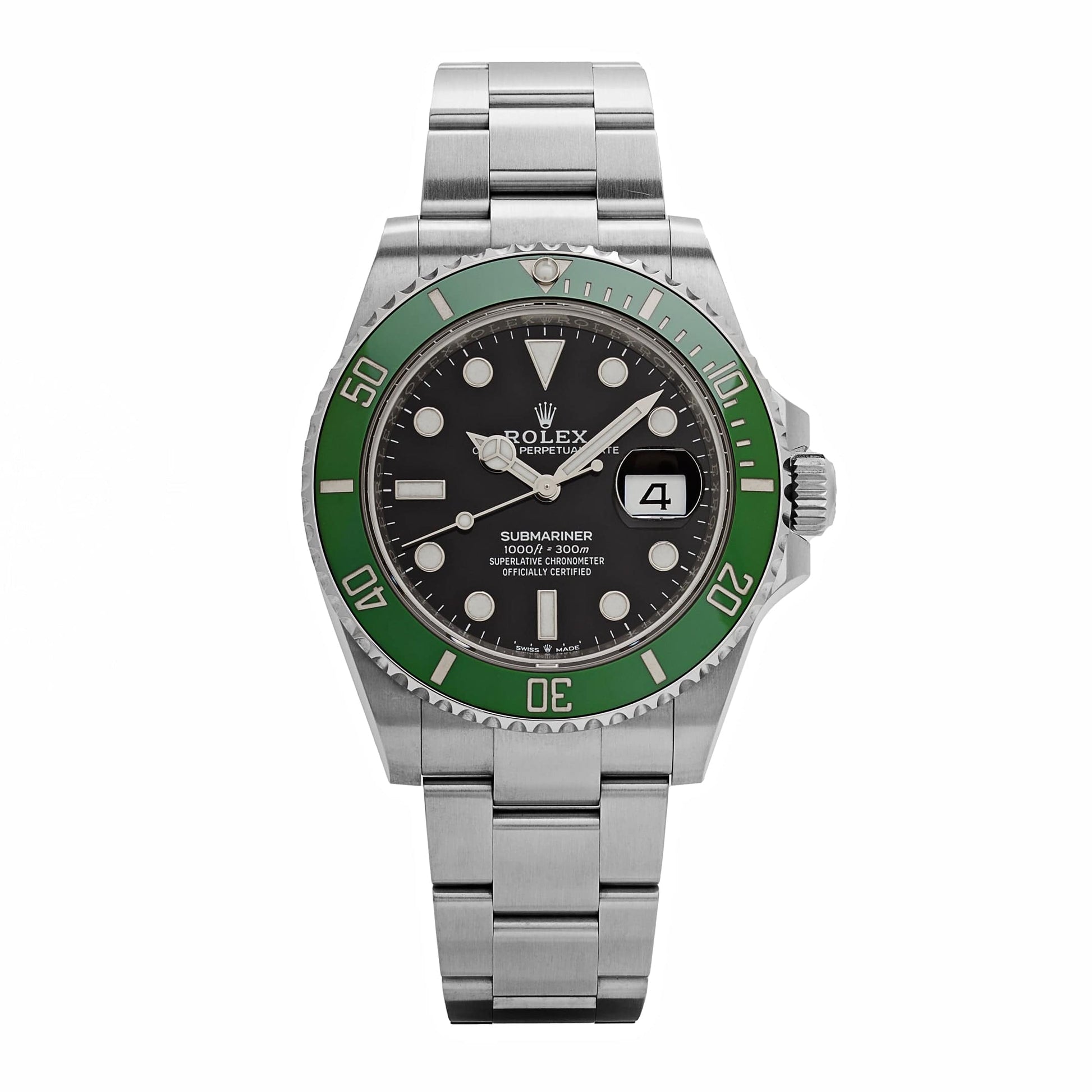 This 2025 Watch Submariner Date 126610LV is designed in a 41mm stainless steel case. black dial. green bezel. and styled on a stainless steel Oyster bracelet. The bezel has ribbed edges that are easy to grip underwater.?Luminous hour markers. hands. and a?Chromalight?display provide clear legibility in every circumstance. Features that let the wearer take full advantage of the 60-minute increment function and safely keep track of their dive. The 2025 Watch Submariner 126610LV is a reliable timepiece. ready for any adventure.