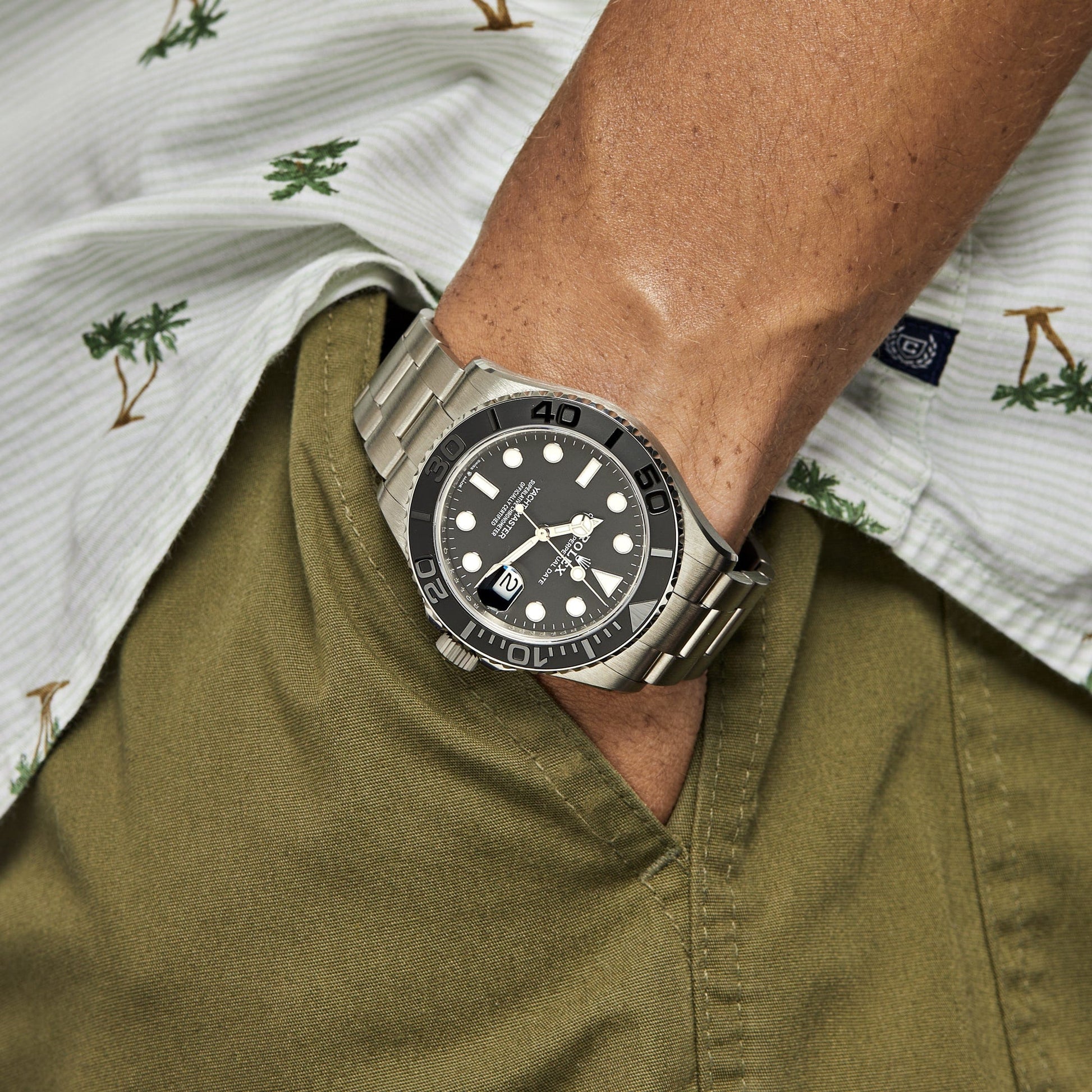This 2025 Watch Yacht-Master is designed with a 42mm RLX-titanium case and black dial. styled on a matching titanium Oyster bracelet. Luminous hour markers. hands. and a Chromalight display provide clear legibility in every circumstance. Complications include a bidirectional 60-minute bezel. stop-time keeping. and water resistance up to 100 meters. The RLX Titanium material is ultra light and resistant to corrosion - which is perfect for extra-long dives and a lifetime of wear.?